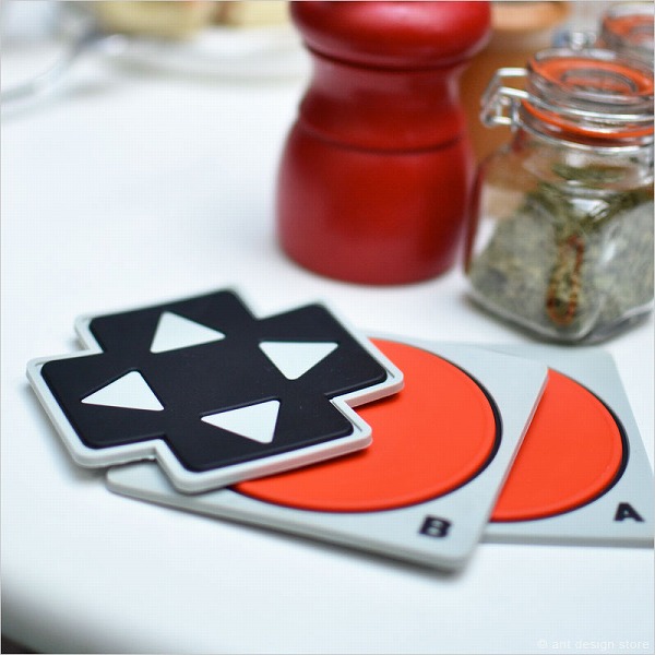 さぁ、今から楽しくゲーム!じゃなくて、食事ですね、食事。ついついゲームが頭か離れなくって・・・という方にぴったりなコースター♪ABボタンと十字キーのセットです。