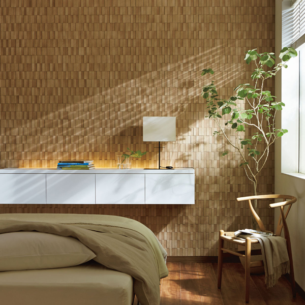 木材を粗く切ったような仕上げのレリーフが特長です。寝室など穏やかな空間にお薦めです。