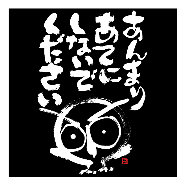 縁起物の"ふくろう"【 不苦労 …苦労をしない、福来朗 …福が来るのを呼ぶ 】をモチーフに"ゆるーいメッセージ"が添えられた、墨独特の濃淡・にじみ・かすれなどを、描く瞬間の感性で表現された作品をTシャツにプリントしました!