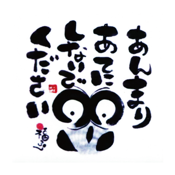 縁起物の"ふくろう"【 不苦労 …苦労をしない、福来朗 …福が来るのを呼ぶ 】をモチーフに"ゆるーいメッセージ"が添えられた、墨独特の濃淡・にじみ・かすれなどを、描く瞬間の感性で表現された作品をタイルにプリントしました!