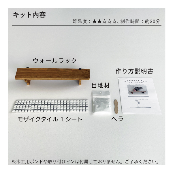 【タイル クラフトキット】ウォールラック~モザイクタイル(ホワイト)~幅30cm×奥行き6.5cm×高さ6cm