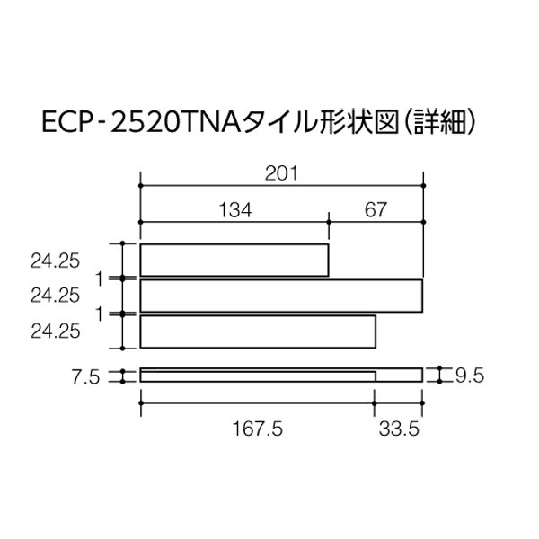 エコカラットプラス ディニタ 25×202角片面小端仕上げ(短辺)ネット張り(出隅用) ECP-2520TNA/DNT2 / LIXIL(INAX) タイル
