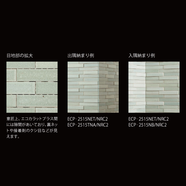 ・エコカラットプラスの寸法誤差や下地の状態(不陸等)によってエコカラットプラス間に数mm程度の隙間があく場合があります。