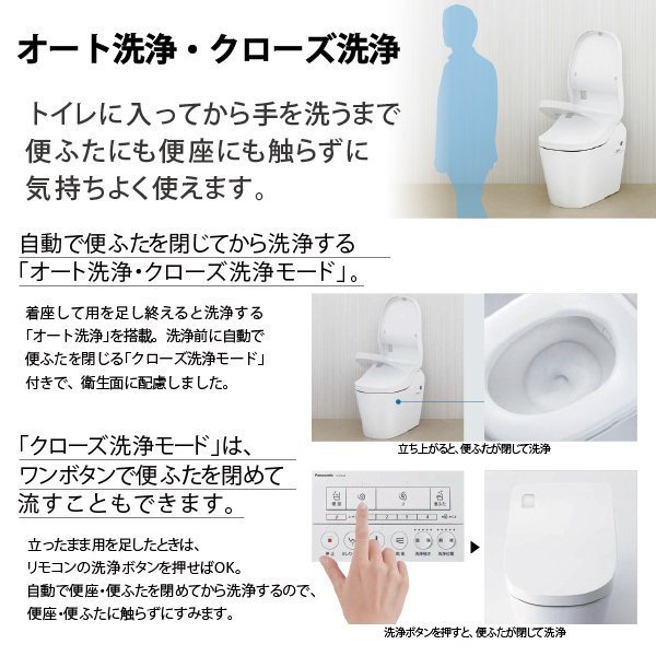 ※着座で用を足したあと、便ふたを閉じて自動洗浄。さらに洗浄時には除菌効果のあるオゾン水を自動で散布し、汚れの原因菌を抑制し、いつも清潔!